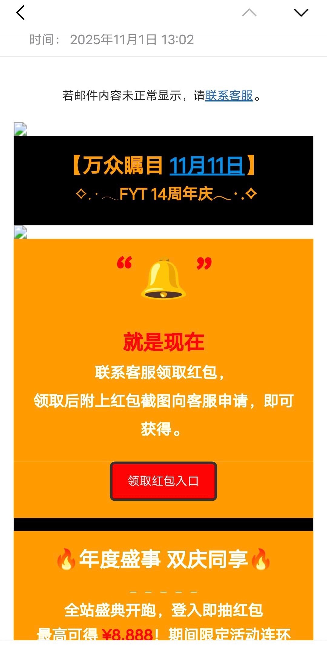 有号的兄弟可以登入上联系客服领取周年庆彩金,出款需要充值风险自理!
